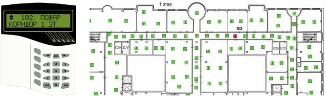 при срабатывании адресного пожарного извещателя на пульте отображается название помещения, где установлен этот адресный пожарный извещатель и номер (адрес) сработавшего датчика. То есть оператор сразу видит, в каком конкретно помещении произошло возгорание (или несанкционированное проникновение)