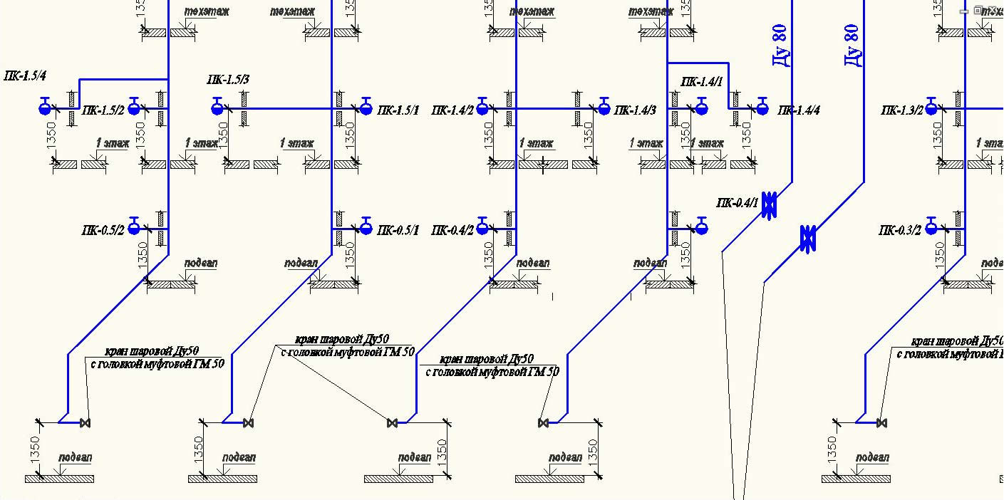 Проект внутреннего пожарного водопровода включает в себя: